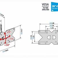 È in grado di supportare televisori con schermi da 26′ a 32′, con una portata massima di 30 kg: è in grado di roteare orizzontalmente fino a 15 gradi, mentre per quanto riguarda la rotazione verticale può andare dai 5 ai 25 gradi.